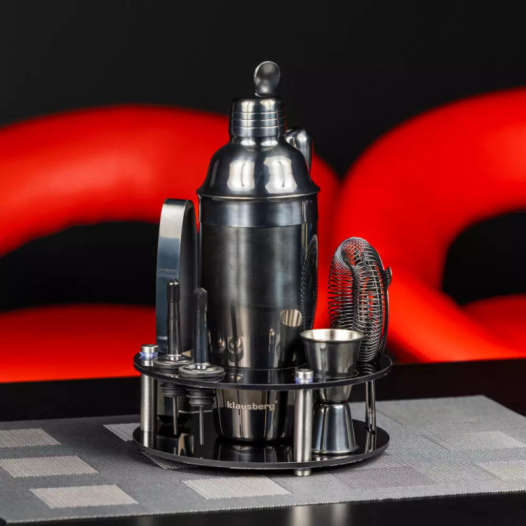 Zestaw barmański 9 elementowy czarny ze stojakiem Klausberg KB 7581