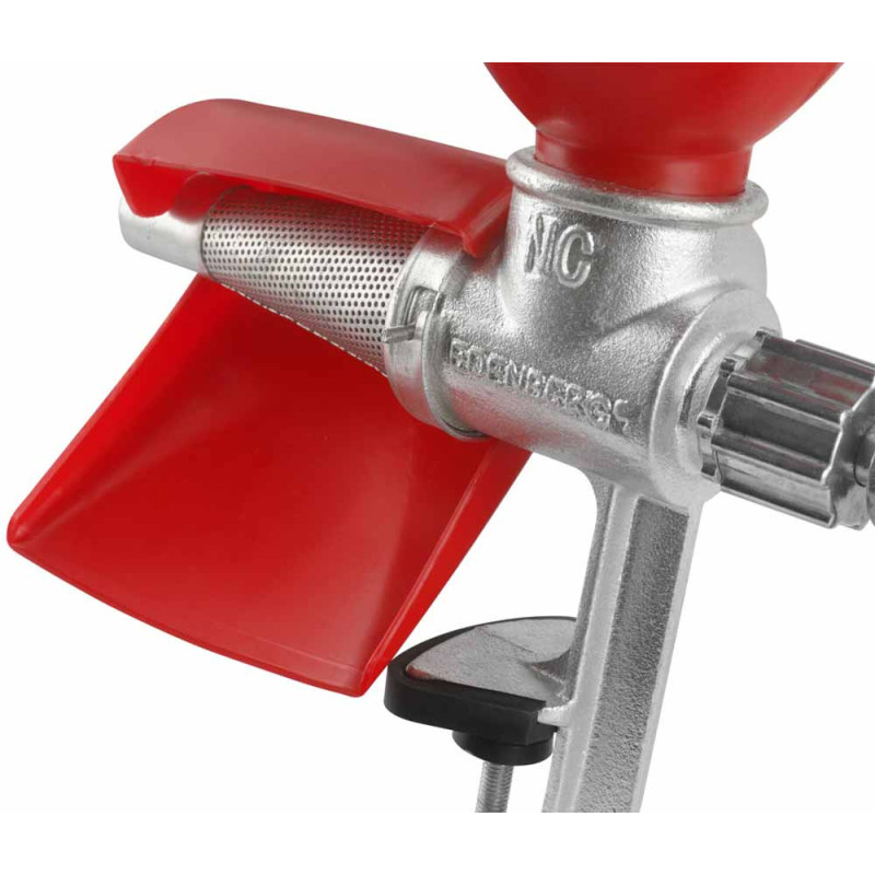 Przecierak posiada plastikowe nakładki dzięki czemu możesz podstawić miski w odpowiednie miejsca i nie robić sobie bałaganu w kuchni. Nakładki nakierowują miąsz i sok, tak że wpadają bezpośrednio do miski.