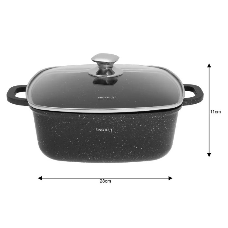 Garnek z marmurową powłoką kamienną, która jest twarda, odporna na ścieranie i uniemożliwia przywieranie przygotowywanym potrawom. Powłoka która nie wchodzi w reakcje z żywnością gwarantuje najwyższą jakość posiłków. Szklana pokrywka z dozownikiem przypraw płynnych w zestawie. Spraw by Twój dom wypełnił się aromatem najwyższej jakości potraw. Nie wahaj się i zamów garnek firmy Kinghoff KH 1605 z marmurową powłoką, którego pozazdroszczą Ci inni!