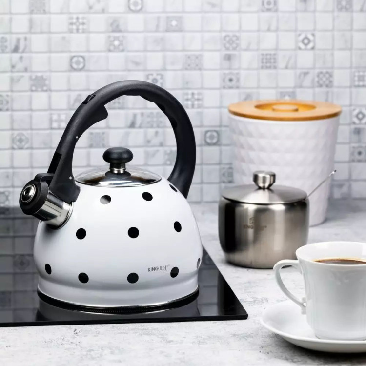 Czajnik emaliowany wykonany z wysokiej jakości stali nierdzewnej. Pojemność czajnika to uniwersalne 2 litry, które są najczęściej wybierane przez naszych klientów. Czajnik jest bardzo funkcjonalny, posiada głośny gwizdek z mechanizmem otwierania w rączce. Zdejmowana pokrywka ułatwia napełnianie czajnika wodą oraz jego mycie.