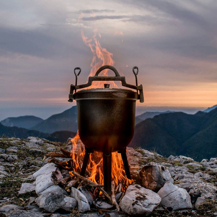 Kociołek myśliwski o pojemności 10 L w zestawie z solidną pokrywką, wykonany z wysokiej jakości żeliwa, które bardzo szybko się nagrzewa i na długo utrzymuje ciepło. Garnek posiada mocowanie pokrywki, które służy również jako uchwyt do przenoszenia i zawieszenia nad paleniskiem. Dania przyrządzone w kociołku mają swój niepowtarzalny, charakterystyczny smak i aromat. Spraw przyjemność sobie i swoim bliskim przygotowując wyśmienite dania w żeliwnym kociołku.