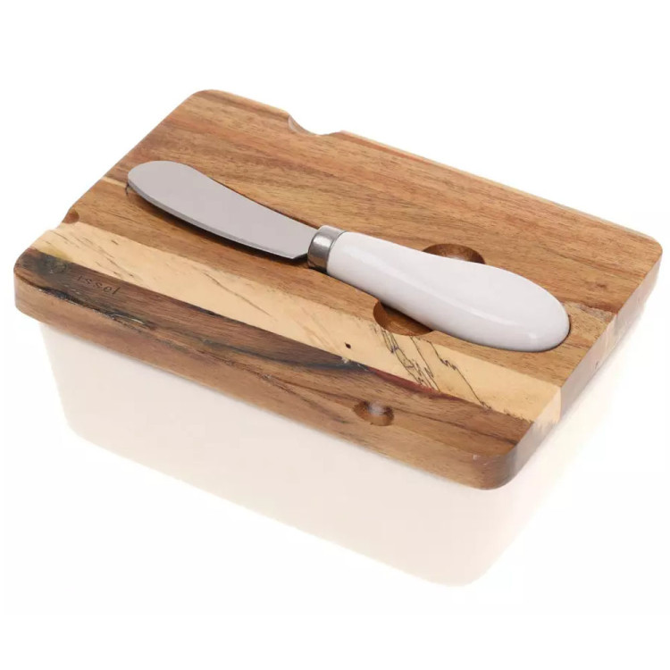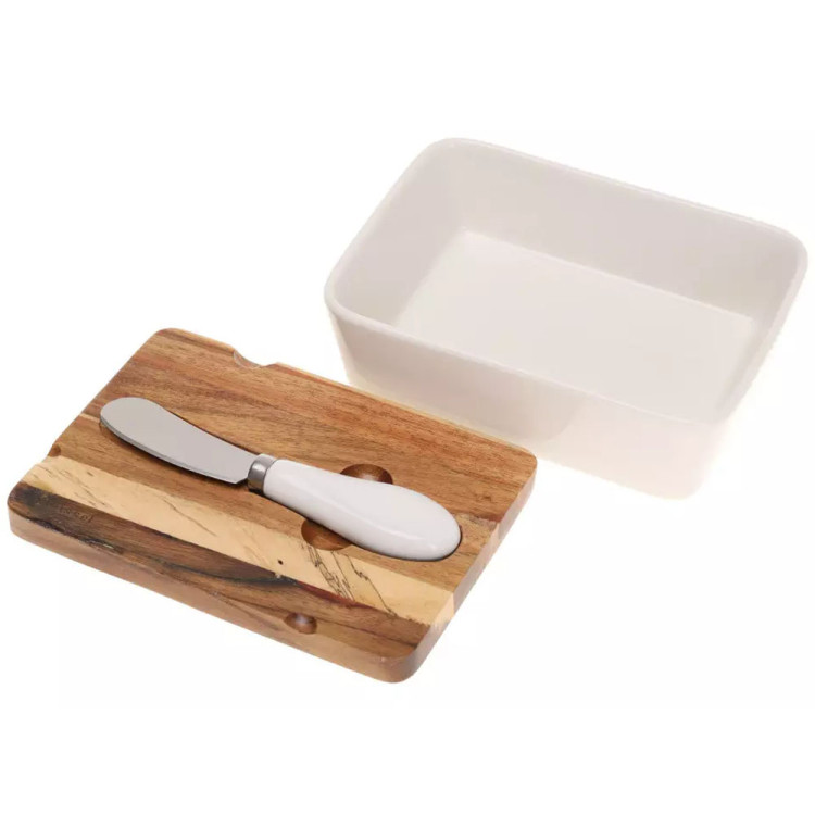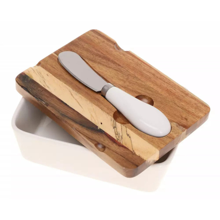 Maselniczka z nożem to praktyczne i estetyczne naczynie, które zapewni higieniczne przechowywanie masła.