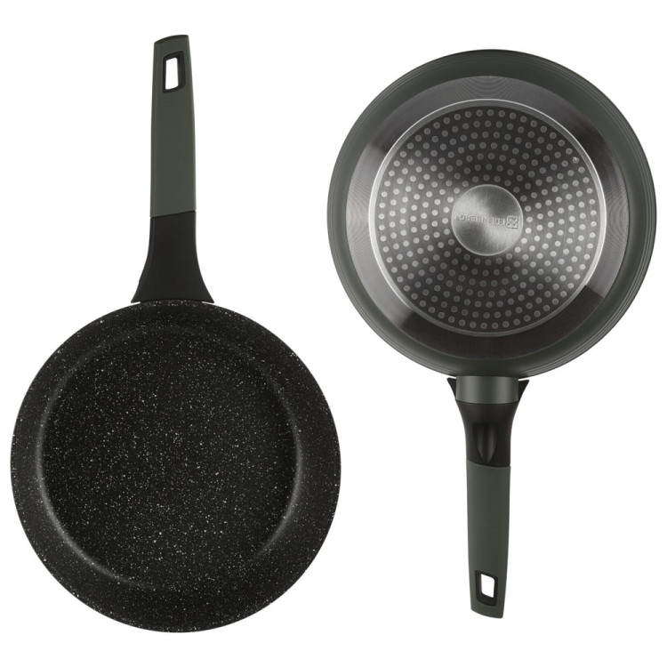 W zestawie znajduje się praktyczna patelnia oraz rondel z trwałą powłoką marmurową oraz pokrywką.
